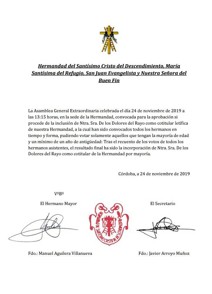 La imagen de la Virgen del Rayo se incorpora como cotitular a la hermandad del...Podemos utilizar cookies propias y de terceros para mejorar su experiencia de navegación, si continúa navegando, consideramos que acepta su uso. Más información.